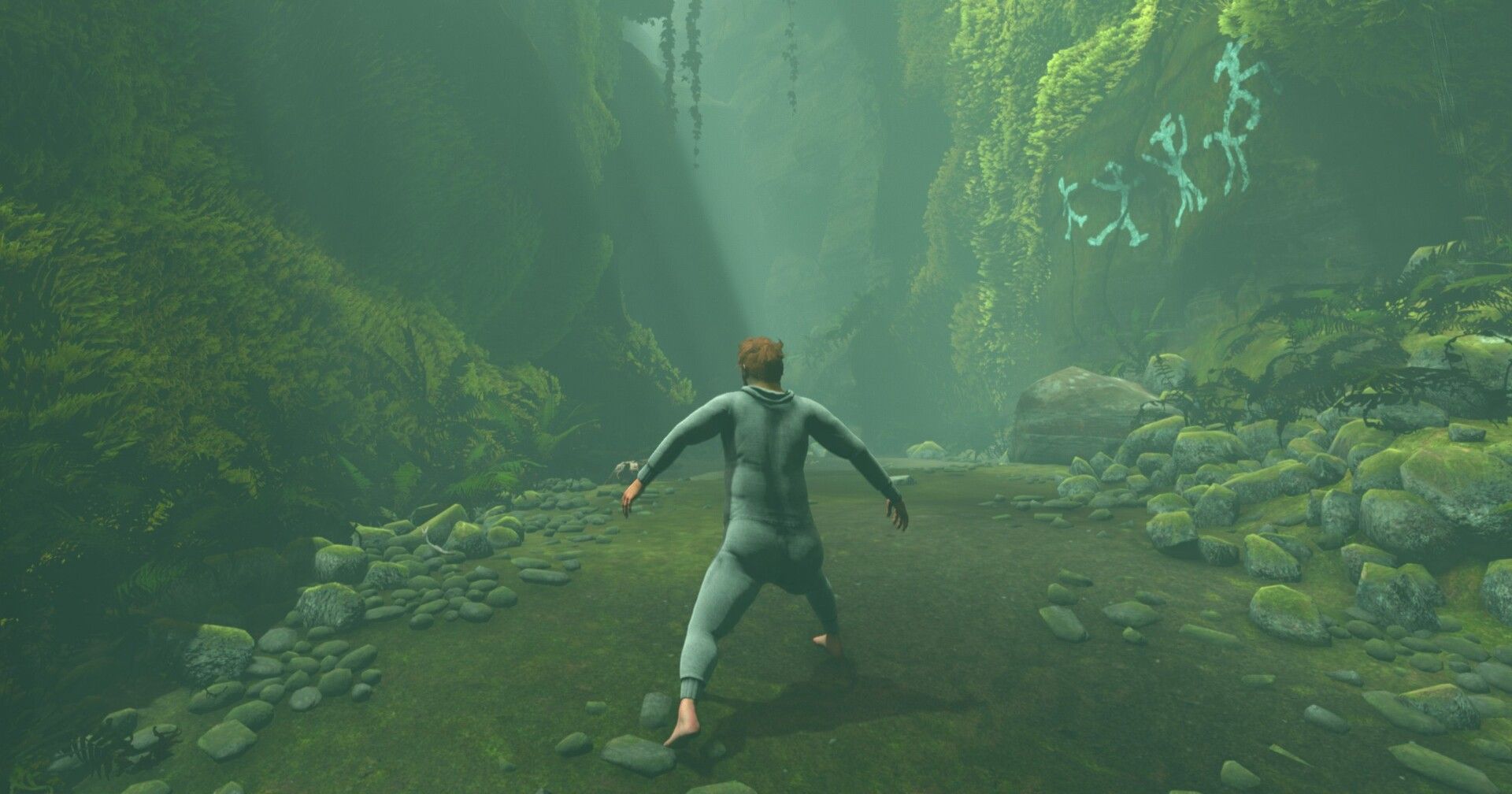 The friction is constitutive of the game’s fun, is what I’m trying to say. One of my favorite moments so far was at the end of a great big circle I unwittingly weaved, which brought me back to a maze of stonework that, seen from a different angle, seemed worth traversing. In this maze, a pile of beams blocked a gap in the stone through which I intuited lay more terrain I had yet to explore, perhaps the very area I had been trying to reach for the last half hour. Just for fun, almost as much to watch Nate’s ragdoll character model squirm around as anything else, I pushed Nate forward into the pile of timber, tumbling him into a truly ridiculous pretzel as he attempted to rise to his feet, but as I kept doing this and giggling uncontrollably, alone in my apartment at 10:30 p.m., I realized there was a chance I could make him fall and squirm just right to brute force the top half of Nate’s model through the small gap between a couple of the beams, taking advantage of his automatic standing animation to bring the rest of him through the gap. The sense of accomplishment I felt when it finally worked tingled from my head to my toes.